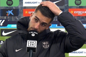 体育资讯3月28日讯 巴萨3-0战胜奥萨苏纳,本场比赛费兰-托雷斯表现出色,贡献1粒进球。赛后,费兰接受DAZN采访。